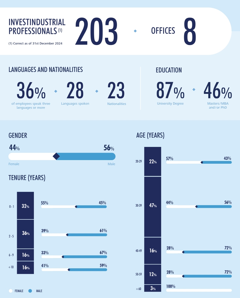 Investindustrial operates with the support of one global cohesive team of more than 200 professionals representing 23 nationalities, based across offices in Switzerland, Spain, United Kingdom, France, United States, Luxembourg, the United Arab Emirates, and China.